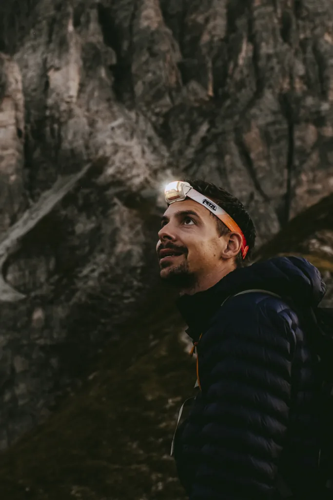 Als de zon achter de bergen is, is hij nog niet gelijk onder dus hebben we nog even de tijd om in de schemer het eerste stuk naar beneden te lopen. Dat is toch wel erg fijn. Omdat we nog 800 meter moeten afdalen redden we helaas niet de hele terugweg in het licht en is het tijd om onze koplampjes te gebruiken. Ze laten maar weer zien dat ook deze van goede kwaliteit zijn. Wanneer we naar beneden lopen zien we toevallig ook aan de overkant nog een paar koplampjes. Er waren dus meer mensen met hetzelfde idee, alleen komen zij vanuit de indrukkwekkende kam. Knap hoe ze daar zo in de schemer doorheen zijn geklommen! Wij besluiten deze een volgende keer wel te bezoeken, maar dan lekker met daglicht.